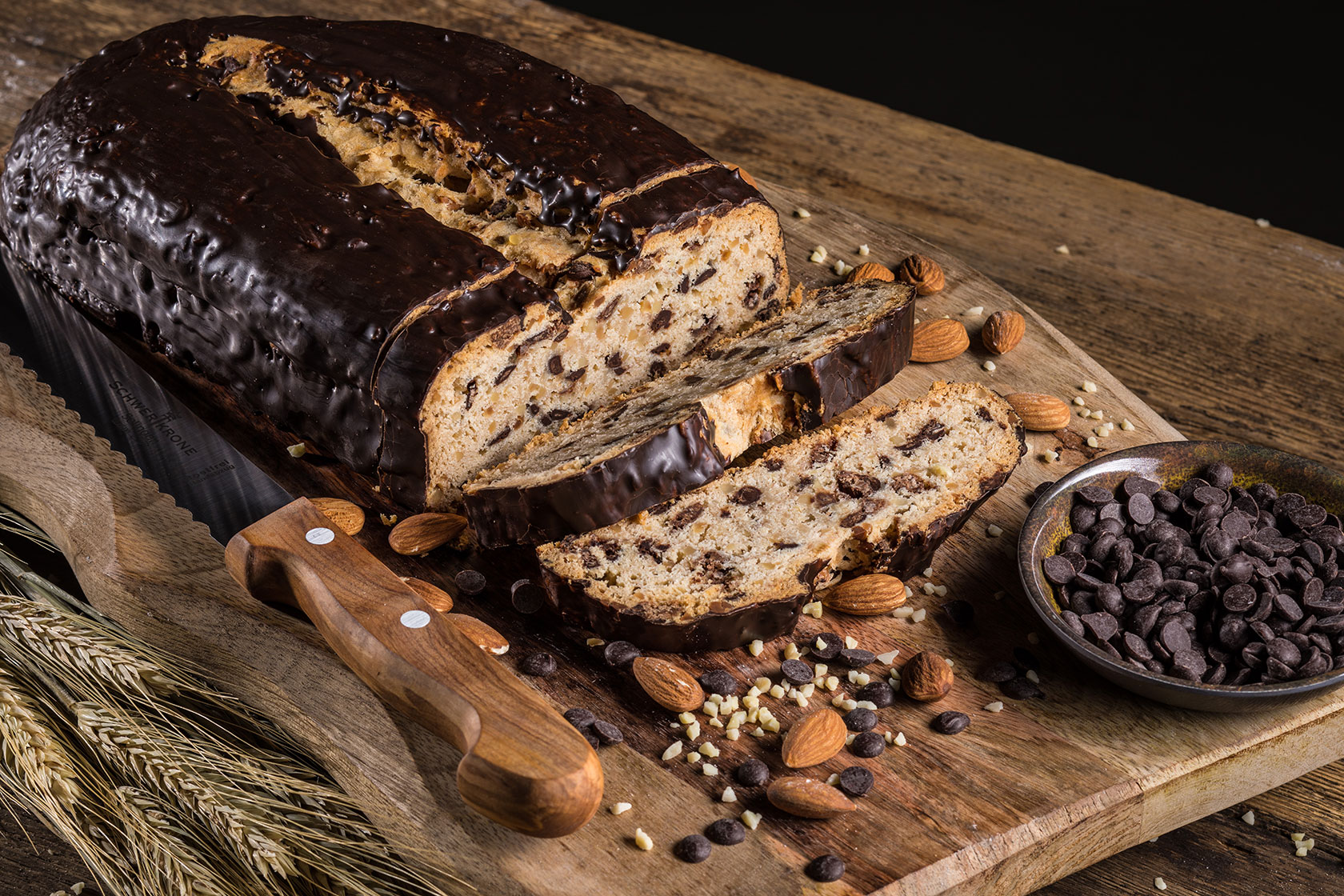 Wie der Name schon sagt, kommt bei diesen Stollen ein sehr hoher Anteil an Mandeln zum Einsatz. Diese machen ihn sehr zart und nussig zugleich.